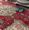 ダイニングやリビングに敷いて頂いてもたっぷり余裕のある、超大判サイズのトルコヴィンテージラグです