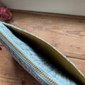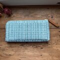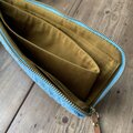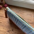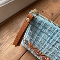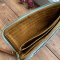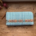 インド刺繍リボン長財布(ブルー系ツイード×オレンジリボン)