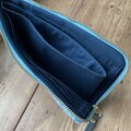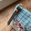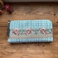 インド刺繍リボン長財布(ブルー系ツイード×ベージュリボン)