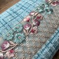 チュールベースに、エレガントなデザインの刺繍が美しいインド刺繍リボンを使用して長財布を作りました。