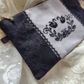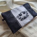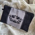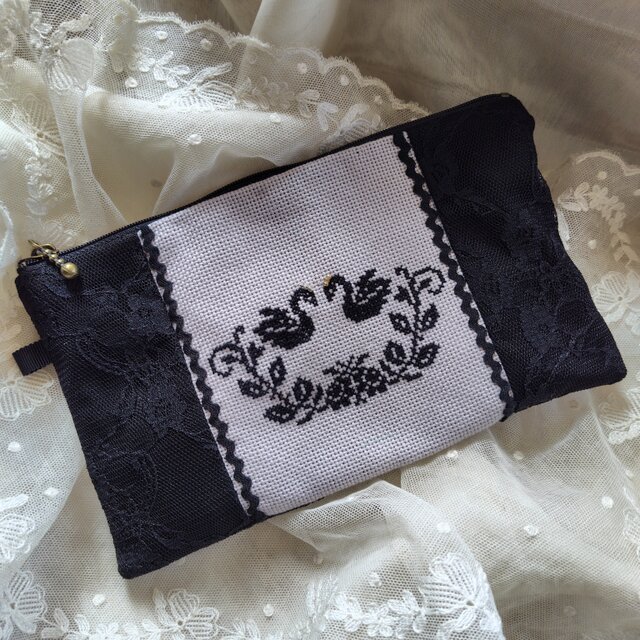 スワンと薔薇のガーランドのクロスステッチをメインにしたポーチです。