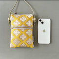 【受注制作】新作 モロッカン生地のスマホポシェット/スマホショルダー/ピルゥファス/イエロー -