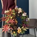 赤やオレンジ、ブラウンの色味の草花を集めたリースを作りました!