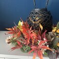 紅葉した葉ものや栗・ワレモコウを取り入れて、