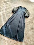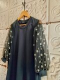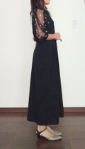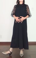 ブラックカットソー&メッシュドットパフスリーブワンピース