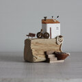 先ほど受け取りました。 流木の風合い、カモメ、岬の先にある白い壁の一軒家…ノスタルジーに誘われ.風や波音が静かに聴こえてきそうな雰囲気のある作品です。早速、リビングの棚に飾りました。 ありがとうございました!