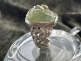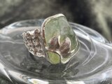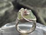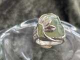 クラックが多く、保護の意味で石の上に葉っぱを付けたわけですが、遠近感が出て想像力を広げる面白いリングとなりました。