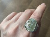 (幅広のリングですが石の裏側にスペースがあり、圧迫感が無く細いリングで14号〜15号サイズの方におすすめ。季節によって指を変えてお楽しみください。サイズ直しは不可)