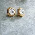 クリスタルカットされたクリアなビジューが煌めく、ゴールドトーンのクリップイヤリング。