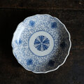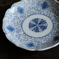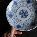 花唐草で可愛い◆瀬戸焼 花唐草文印判七寸中皿 骨董・antiques 丁寧な暮らしに。大正〜昭和初期