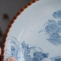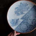 草花の絵付け◆唐草と千鳥。伊万里 印判イゲ皿 大皿 骨董・antiques 骨董のある暮らしに。明治~大正期