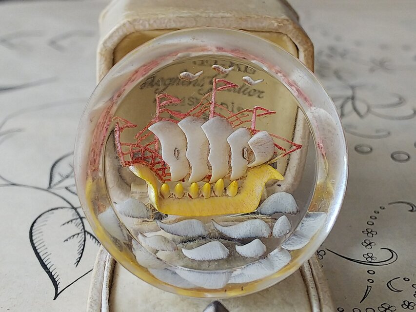 そのような温かな気持ちをこめて作られたようなガレオン船のルーサイト製ブローチ