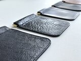 「薄いポーチはないのかぁ」という何気ないお客様の一言をきっかけに製品開発を始め、完成したのがこのポーチです。