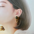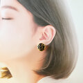個性的な模様のボタンのイヤリング ピアス ボタンアクセサリー 2WAY 金属アレルギー対応