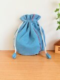 播州織のラウンド巾着袋(水色)
