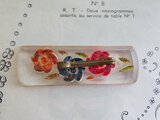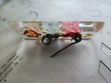 1940年代ヴィンテージ、3色のお花の細長いルーサイト製ブローチです。