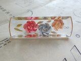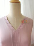 パステル調の優しいお色のお花が並ぶ細長いブローチ。