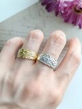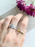 ありがとうございました。 細かいウェーブがキラキラ光って綺麗です。 いつも付けているゴールドの平打ちのリングに重ねづけしてみたらまるで一つのリングのようになりました。