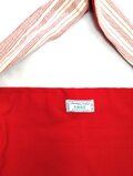 赤がベースのかわいいバッグです。 バッグの表と裏、手持ちベルトの模様の出方も違っていて、持っていて楽しくなりそうです。絶対出番多そうです。かわいらしいお品物をありがとうございました(^^) また利用いたします。