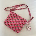 ♪ピンク地にホワイトのドットのオックス生地をタブのように施しショルダー紐を通せるようにしています。