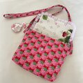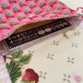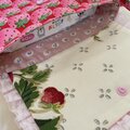 ♪内布は蓋部分アイボリーにいちご柄、本体ピンク地に小花柄(コットン100%)です。