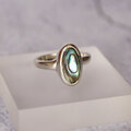 それぞれのリングは、アバロンシェルのユニークなパターンを持ち、世界に二つとない特別な美しさを放ちます。