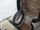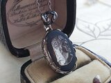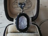 ヴィンテージ Clear/漆黒 カメオ(右向き)アールヌーボー調アンティークSilverネックレス