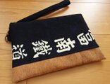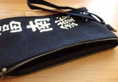 しっかりとしたアンティークの印半纏の襟部分から仕立てたポーチです。