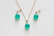 すりガラスのような柔らかな緑色の風合いと、ほのかな透明感が美しいペンダント。