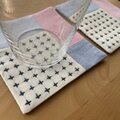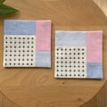 《数量限定》刺し子コースター2枚セット パッチワーク十字/ピンクブルー プチギフト ギンガムチェック カラフル パステル