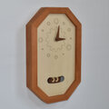 赤味をおびた桜のフレームに白木の文字盤、針はウォールナットの切り出しで素材の質感を感じさせてくれます。