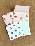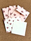 ミニ封筒は、少しざらっとした肌触りのピンク色の紙を使用。ミニカードは、艶消しの白い紙を使用。