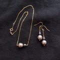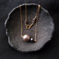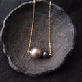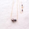 紺色のブラックパールをあわせたバイカラーネックレス。