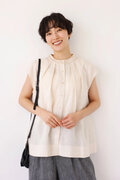 襟元のタックデザインとゆったりとしたシルエットで、体型を気にせず着こなせます。肌にまとわりつかない立体感のある裁断で、動きやすさとスタイリッシュさを両立。短めの袖デザインで、涼しげな印象に仕上げています。