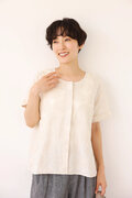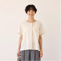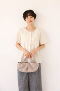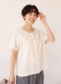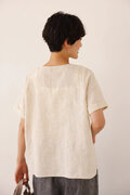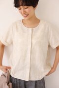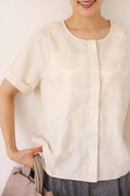大人の女性らしさ 蓮の葉モチーフ クルーネックブラウス フォーマルにも 生成色 250717-1