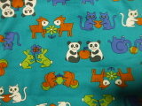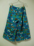 明るいグリーン地×アニマル柄 ガウチョパンツ両脇ポケット付き 綿100% M~LLサイズ 受注生産