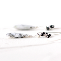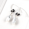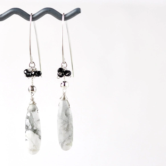 マットな白地に黒やグレーの繊細な網目模様が美しいハウライトを主役にしたフックピアス。