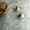 ホワイトとゴールドトーンカボションのコンバーチブルピアス。