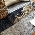 ふんわりと淡いブルーに、しっとりとしたこっくりネイビー。まるで空と海が静かに溶け合うような色合いが印象的な、トルコヴィンテージのパッチワークラグです。中央にのぞく繊細な柄は、時を重ねてこそ生まれる柔らかな表情。色も模様も、それぞれのパーツが物語を紡ぐようにひとつにまとまっています。