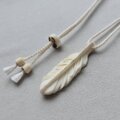 運命を感じました、これは私の元に来てくださる羽根なのだと。優しい白一色で、羽根はもちろんのこと、長さ調節のビーズも先端のちいさなふたつのビーズも本当に美しいです。経年変化も愉しんで、永く大切な御守りにさせていただきたいと思っています。この度は素敵な作品をお譲りいただき、本当にありがとうございました*