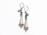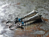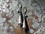 oldアフガンメタルとインディゴブルーアンティークビーズ、インドシルバー鈴を繋いだピアスです。