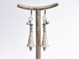 oldアフガンメタルとインディゴブルーアンティークビーズ、インドシルバー鈴のピアス