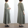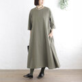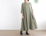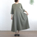 《着丈113cm》秋の始まりに◎ ゆったり細見え 東炊きコットンリネン サイドタックワンピース(カーキ)OP37