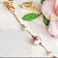 陶器のビーズに手書き風て可愛いらしいピンクのフラワー