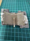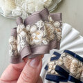繊細な刺繍が美しいインド刺繍リボンと、光沢のあるグログランリボンを組み合わせ、ふんわりとした立体感のあるフォルムに仕上げました。