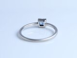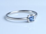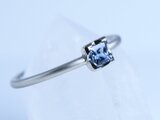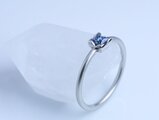 鮮やかな青と高い透明度が魅力のブルーサファイアを、端正なプリンセスカットで仕立てたプラチナリングです。