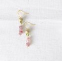 G97【天然石 ピンクエピドート(ストロベリークォーツ】フレンチテイストのくすみカラーのピアス(パーツ変更可能)