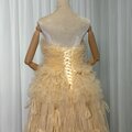 パーティードレス シャンパン色 ベアトップ リボン もこもこドレス 編み上げ 披露宴