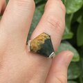 ジャスパー 変形トライアングル 立体ラフカット アートな鉱物 シルバーSV925リング