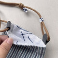 【1点もの】着物地のミニサコッシュ -三河木綿 水色系の縞 & 浴衣地 白地に「あすか」(ヴィンテージ) CRB376